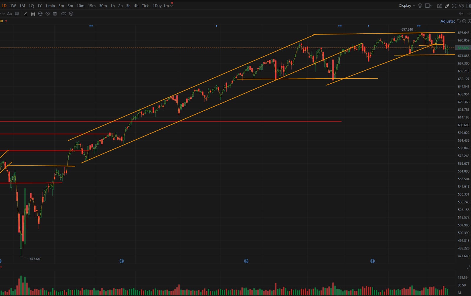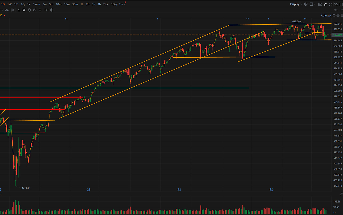 美股:长周末后美股低开高走,SPY基本持平。我们可以再理一下近期的重要事件:1、经济数据,非农超预期但是下修了2025年超100万个职位,公信力低,CPI低于预期,其实是给降息扫除障碍的,但是,这两个数据公布后,3月的降息预期依然只有10%左右,市场流动性并没有更宽松的预期;2、中美关系,虽然我们看到纷纷扰扰,但似乎从最近的慕尼黑安全会议来看,特朗普访华的可能性还是比较大,在中期选举前,特朗普是需要从中国这里得分的,中美破局的概率小;3、AI的冲击,我们近期看到软件行业的大幅杀跌、甚至蔓延到运输、流媒体等行业,AI给其它行业带去的冲击正在显现出来,这成为近期市场下调的最主要动力;另外还叠加了一些对于美联储新主席的怀疑,以及美国内部的例如爱泼斯坦文件公开带来的对于精英执政的信心下降,这些叠加造成了2月以来的的市场的调整。我们年初的分析框架就是流动性+中美关系+AI泡沫,目前看流动性没有扩张但也没有收缩的趋势,中美关系稳定,AI并不是泡沫而是对其它行业的冲击,这是市场其它行业的阵痛,其实反而说明了AI这几万亿投资并非在打水漂,而是带来新的生产力的,传统行业受冲击估值下滑这个趋势可能不可避免,对于市场信心会有一定的影响,但长期看淘汰落后行业、适者生存不正是世界进化的方向吗?我对于这样的冲击并不太担心,市场会有短期的回调波动,传统这些受冲击的公司也不会都死掉,里面会有行业的重塑与重生,这种技术革新引发的调整往往是良性的,我倾向于认为SPY调整幅度不会超过10%,到目前为止跌幅也就是3%左右。短期我们先看675附近的支撑位,即便跌破,也没有特别值得恐慌的,看看美股涨了多少年了?适度的调整不正是为AI的再次爆发启航做准备工作吗?