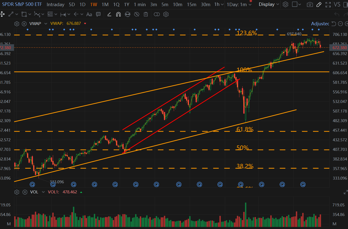 美股:美股经历了去年4月份以来最惨的一周,本周五非农数据后,美股进一步跳水,三大指数本周跌幅均接近或者超过2%。本周最重要的事情就是伊朗战争的爆发,从上周六开始,战争不知不觉中已经度过了近一周,美国确实清除了伊朗的若干领导层,但是他们的想速胜可以宣布赢麻了的情况并未出现。今天特朗普还说不会和伊朗谈判除非伊朗彻底的投降,伊朗会彻底投降吗?对于小哈梅内伊来说,这是国仇家恨,完全投降的可能性几乎没有,这也意味着美伊的战争将会长期化。战争会怎么走?从今天特朗普的表态看,大概率会是泥潭化,但是,能够改变特朗普主意的就是明天的特朗普,谁知道他能承受多久。战争谁会赢?这是一个分裂的美国与空前团结的伊朗作战,短期肯定是美国指哪打哪,但如果进入长期战争,美国具备摧毁伊朗这个国家的能力,但是要想所谓的赢得战争就得出动地面部队,真那样的话伊拉克、阿富汗就是前车之鉴。而且随着战争的推进,美国国内的反战情绪会高涨,如果美军伤亡增加,民主党就更有了借口去推进停战了。即便美国武器弹药充足,其实留给特朗普的时间也会比较有限。我认为可能的结果是短期内以色列会尽一切可能摧毁伊朗的工业能力,美国打了一段时间会抽身而退,留下一个倒退几十年满目疮痍的伊朗,默默舔舐伤口,对美以仇恨的种子深种,中东长期处于不安定中。以色列也谈不上有战略安全,美国信用破产,伊朗倒退几十年,他们三者没有赢家。事到如今,我认为无论美国是长期陷入战争泥潭还是短期能抽身而退,它几乎都注定是个巨大的输家。陷入泥潭战争,国力持续消耗,油价飞涨,通胀飙升,美国经济受到巨大冲击,股市大跌;如果快速抽身而退,则意味着美国军力捉襟见肘,而美国金融霸权的依仗恰恰是军事能力,如果世界意识到美国军事能力的下滑,很可能会导致现有美元体系的快速瓦解。怎么看,对于美国的金融市场都难有善了。今天其实还公布了2越非农数据,那个惨不忍睹,2月非农就业人数减少了 9.2 万人。这与此前市场普遍预测的新增 5-6 万人形成了巨大反差,是自疫情以来罕见的负增长。而1月的非农又不出意料的下修了,失业率涨到了4.4%,高于预期的4.3%,就业市场比想象的还要糟糕,加上战争带来的通胀压力,急得美联储的DALY出来说,可能抗通胀和保就业他们都难达成了。今天的非农也是促使美股大跌的又一重要因素。通胀、失业再加上之前的糟糕的GDP数据,在战争背景下,美国经济又开始被质疑要进入滞胀了,真是上世纪70年代的担忧又一件件的重现。技术面看,SPY跌破了675,670的支撑位似乎也撑不住了,在战争影响下,市场在高位盘整3个月后,还是选择向下了,SPY的下一个重要支撑位在650附近,如果这个周末战争没有好转迹象,SPY大概率还要进一步破位,只有股市跌狠了,特朗普跌疼了,知道自己中期选举悬了,特朗普可能会TACO。阻力位先看680的前期反复争夺的点。